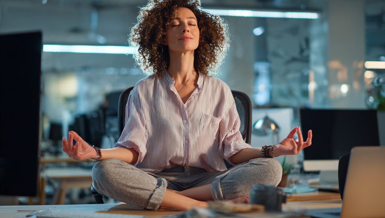 Through conscious breathing and awareness, it activates the parasympathetic nervous system, lowering stress hormones and improving focus.
